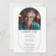 In the arch-shaped design, a cherished photo takes centre stage, surrounded by a simple yet meaningful layout. The Christian cross, subtly integrated, adds a touch of religious significance to the invitation. The calligraphy detailing enhances the elegance, creating a fitting memorial card for your dear one.