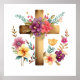Christian Cross & Watercolor Flowers Poster