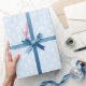 Christian Cross White on Blue Damask Pattern Wrapping Paper