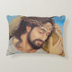 The cushion is small to medium sized. It can be washed. It is well constructed. The material used is pleasant and feels decent quality. It has a very slight plush feel which is good. It is well labelled and its care clearly stated. Theres nothing not to like about it. All in all a good item. The deduction of one star overall is due to long delays in delivery to the UK. It's not clear if this was due to Zazzle or somewhere else in the chain as I did not receive status updates of dispatch or progress. I cannot comment anymore on that other than to say that was our experience but it may not be the same for you. The printing was surprisingly close to what we were expecting. Its an art piece and on material so its hard to assess the precision of printing but it seems close to the original. The soft lines are reproductions of the original. The colour is a fair reflection of the painting. This was printed in the US and it looks like US quality. No issues.