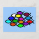 A school of Christian fish symbols in rainbow colours all swimming in one direction united with one purpose.