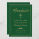 Christian Graduation Green Gold Cross Script Announcement