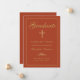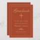 Send your family and friends an elegant Christian graduation announcement featuring a burnt orange background with faux gold calligraphy and cross bordered by a thin gold frame. Personalise with your graduation details. Designed by Susan Coffey.