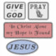 Four Christian stickers in one. Give it to god, Pray, In Christ alone my hope is found, Jesus.