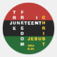 Stylish JUNETEENTH design with Christian Bible reference, showing the inspirational quote TRUE FREEDOM IN CHRIST JESUS in a crossword format including JUNETEENTH, and is set against red, black and green panels (colours of the PAN AFRICAN FLAG). The main text is based on the Scripture reference from John 8:36 - HE WHO THE SON (JESUS) SETS FREE IS FREE INDEED. The Bible reference JOHN 8:36 is customisable, so you can replace the text with your MONOGRAM. This would make an ideal gift for Juneteenth, Black History Month, Christmas, Birthdays and throughout the year. Be prepared to share your faith, as this would also make a great conversation starter.