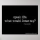 Our speak life. what would Jesus say? Posters Our long-lived posters, on black paper creates vibrant art and photo reproductions. statements enhances any dorm or room. Add your favourite Scripture, name or a photo to make it your very own. Agrainofmustardseed.com products are like no other. What better way to keep a steady flow of the Word than with something you look at daily. Faith comes by hearing and hearing by the word of God. Our products ensure you keep that flow going so that you know Who to turn to.