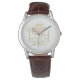 The watch looks really great! Very sharp and well done. The leather band is really nice, though for a man's watch I think it should be longer. Unfortunately, it isn't big enough for my husband's wrist but I will get a replacement because he is very excited to wear it!