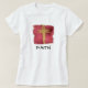 * Spiritual Religious Christian Women's FAITH word on tee-shirt with a a Grunge Distressed Red abstract square with an abstract faux Glitter Red Cross.