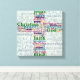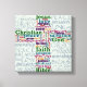 This religious word art / subway art design features words associated with Christianity arranged into the shape of a cross. Words include: God, Jesus, Christian, Bible, faith, love, peace, kindness, salvation, spiritual, Commandments, righteous, compassion, scripture, disciples, Christ, lamb, good, hope, truth, pray, Heaven, saviour, worship, passion, gospel, charity, pure, holy, joy, Lord, verse, church, miracle, belief, bless, grace, glory, will, spirit, angels, trinity, and cross.