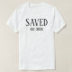 Minimal TETELESTAI Saved Established Christian Easter T-shirt with CUSTOMIZABLE TEXT. Front pocket design says SAVED and EST. plus customisable year. The back shows the word TETELESTAI across the back with the phrase FINISHED • DONE • PERIOD, which is also customisable. Perfect for Christians of all ages, and especially during Easter or for Baptisms. Contact me if you're a church or faith-based group and would like extra branding with your logo. Ideal personalised unisex Christian Saved tee for all ages. Matching gifts available. Also in black.