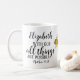 Customisable name mug with scripture from Matthew 19:26 "with God all things are possible" with watercolor sunflowers and a cross, with script and serif typography.