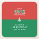 Christmas 1st Birthday Party Festive Red & Green Square Paper Coaster