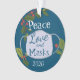 Christmas 2020 Peace Love and Mask Ornament