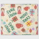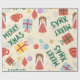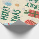 Christmas 2022 modern cute pink red green elegant wrapping paper for children. Adorable pink pastel with text Merry Xmas. This cute pink Pattern is a combination of littlle girls, ornaments, presents, red mugs and grey snowflakes.