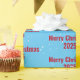 Merry Christmas 2025 on an aqua blue background with snowflakes