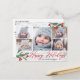 Merry Christmas Rustic Birch Bark 5 PHOTO Greeting Postcard.