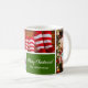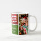 Celebrate the holiday season with this modern, personalised coffee mug. Mug features room for five of your favourite family photos. There's also an area with a green background and the greeting Merry Christmas (which may be edited) and your family name.