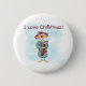 Christmas holiday greeting cards, magnets, mousepads, T-shirts, sweatshirts, and other ragdoll items featuring dressed in a blue polka dot dress holding a candy cane and Christmas stocking and red text that reads 'I Love Christmas!".