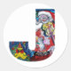 CHRISTMAS A LETTER / SANTA WITH VIOLIN MONOGRAM CLASSIC ROUND STICKER