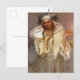 A postcard featuring the fine art painting, Christmas in America (1919) by Alphonse Mucha (186-1939), a Czech-born illustrator and painter from the Art Nouveau period. It depicts a portrait of a woman with fir branches in her hair, holding an apple and a lighted candle. An ideal postcard to send out during the holidays.