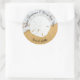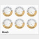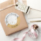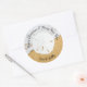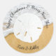 Sand dollar, beach Christmas envelope seal with custom, curved wording at top and bottom.  Place a preferred holiday greeting at the top with names, or date, or other, at the bottom in bold black script.  Beach sand and foamy surf is the background image.