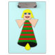 This awesome clipboard features a pretty Christmas Angel with blonde hair, blue eyes and a big smile. Her body is a festive green and red coloured bell with a yellow clapper at the bottom.