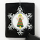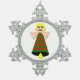 This awesome ornament features a pretty Christmas Angel with blonde hair, blue eyes and a big smile. Her body is a festive green and red coloured bell with a yellow clapper at the bottom.