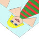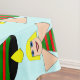 This awesome tablecloth features a pretty Christmas Angel with blonde hair, blue eyes and a big smile. Her body is a festive green and red coloured bell with a yellow clapper at the bottom.