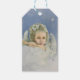 Christmas Angel. Original oil painting by artist Liz Viztes. An angel rests on fluffy clouds under the twinkling Star of Bethlehem in the serene blue sky above. She gazes thoughtfully as she awaits the celebration of the birth of Jesus. Holiday 2024.