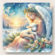 This enchanting scene captures a tender Christmas angel cradling a peaceful lamb against a glowing winter sunrise. Surrounded by a snowy forest, evergreen branches, and delicate holly adorned with berries and poinsettias, the image evokes a deep sense of serenity and spiritual warmth. Soft pastel tones blend with radiant light and starry skies, highlighting the angel's flowing gown, feathered wings, and gentle expression. White doves soar overhead while distant lambs graze across a frost-kissed field, enriching the overall sense of calm and holiday reverence. Ideal for evoking feelings of divine comfort and the quiet magic of a spiritual Christmas, this ethereal winter scene blends elements of peaceful nativity and holiday tranquility. Designed to inspire and uplift, this composition brings a timeless message of peace, innocence, and grace. AI generated artwork.
