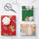 Pretty angels in 3 different designs are featured on this set of three gift wrapping paper sheets. They include the following designs, angels with trumpets and snowflakes with red background, angels holding candles with a green background and an angel with a tree and cardinal with a light blue background. Sold in sets of 3, each sheet is 19.5" X 28.5", making a lovely way to wrap holiday gifts!