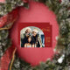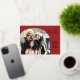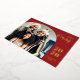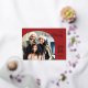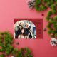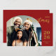 This elegant and modern Christmas greeting card features a minimalist design displaying your favourite family picture inside a trendy arch frame. Easily customisable with your family name and the current year in stylish gold foil serif fonts over a classic festive red background.