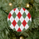 Christmas argyle red and green stitched print. White background. Fun holiday pattern and color.