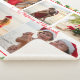 Christmas At The Beach 5 Photo Collage Modern Sherpa Blanket features a photo collage of five of your favourite photos with your custom text in the centre in elegant red calligraphy script on a white background surrounded by a festive Christmas pattern of greenery and Christmas bauble decorations. Personalise by editing the text in the text boxes provided. Perfect gift for birthday, Christmas, Mother's Day, Father's Day, grandparents, sister, brother, cousins, best friends and more. PHOTO TIP: centre your photos before uploading to Zazzle. Designed by ©Evco Studio www.zazzle.com/store/evcostudio