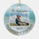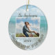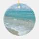 Custom personalized beach themed Christmas ornament with your family photo, beautiful customizable beach ornament! Celebrate your family event, reunion, vacation, or cruise at a beach with this keepsake ornament. Beautiful clear blue water and sand makes an elegant tropical ocean coastal nautical theme for your holiday decor. Pretty turquoise water waves crashing on the shore and pastel blue sky.