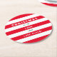 Christmas At The Cabin Red Nautical Stripe Round Paper Coaster
