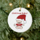 A baby with a stocking cap of red and red kid style text that reads "Christmas Baby" on an ornament you can easily customise for baby's first Christmas.