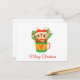 Christmas Baby Owl in a Teacup with Candy Cane Holiday Postcard