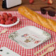 Christmas Clothesline Baby Shower paper plates. Features watercolor stockings, baby outfits with reindeer, santa, snowman, candy canes and garlands on clothesline in muted beige, grey, red, tan and green colours on a faux antique linen background. All wording can be changed. To make more changes go to Personalise this template. On the bottom you’ll see “Want to customise this design even further? Click on the EDIT using Design tool. From there you can change some of the fonts & some colours, move things around or delete what you need.