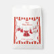 Celebrate your Christmas baby shower girl with this festive favour bag featuring a Santa-inspired red and white design. Ideal for small gifts, candies, or keepsakes, and comes with a charming phrase printed on the bag. Coordinates perfectly with invitations, napkins, plates, cups, banners, and pedestal signs for a cohesive holiday shower set.