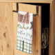 A charming holiday tea towel featuring a vintage Christmas baking lady carrying warm cookies and cocoa with her friendly gray cat by her side. Soft watercolor textures, a nostalgic plaid skirt, and seasonal greenery create a cozy festive feel that is perfect for holiday kitchens. Personalize the name to make a thoughtful gift for bakers, hostesses, or anyone who loves Christmas cooking and pretty seasonal decor. This towel adds a warm touch to everyday baking and holiday traditions.