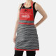 Modern Apron with a Black and White Christmas Tree pattern in combination with an attractive red design featuring the quote "Christmas Baking Team" and name.