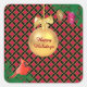 Christmas ball, bird, pine cones on Black & Red Square Sticker