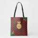 Christmas golden ball, pine cones and cardinal bird on black, golden and red chequered background Tote Bag. There is more to this design than meets the eye.
