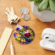 Christmas tree and red ornament ball covered with fresh snow. Colourful light around. Cheerful and joyful mood. Merry Christmas And Happy New Year. Season's greetings. Prints and gifts for anyone for fun and good mood. Square format products and souvenirs.
