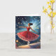This Christmas card features a whimsical scene of a ballerina dancing in a red dress.
