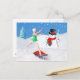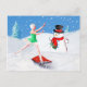 This lovely ballerina not only dances, she dances while on a sled speeding through the snow. A happy snowman watches her on this merry holiday postcard.