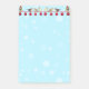 Christmas red balls and cute carol birds with light orbs on light turquoise blue Post-It Notes.
