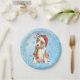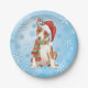 Celebrate the holiday season with a cute Basenji puppy wearing a Santa hat and scarf surrounded by snowflakes and with the words, Happy Howlidays!