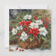 Christmas Basket with Poinsettia Flowers, Berries Holiday Card